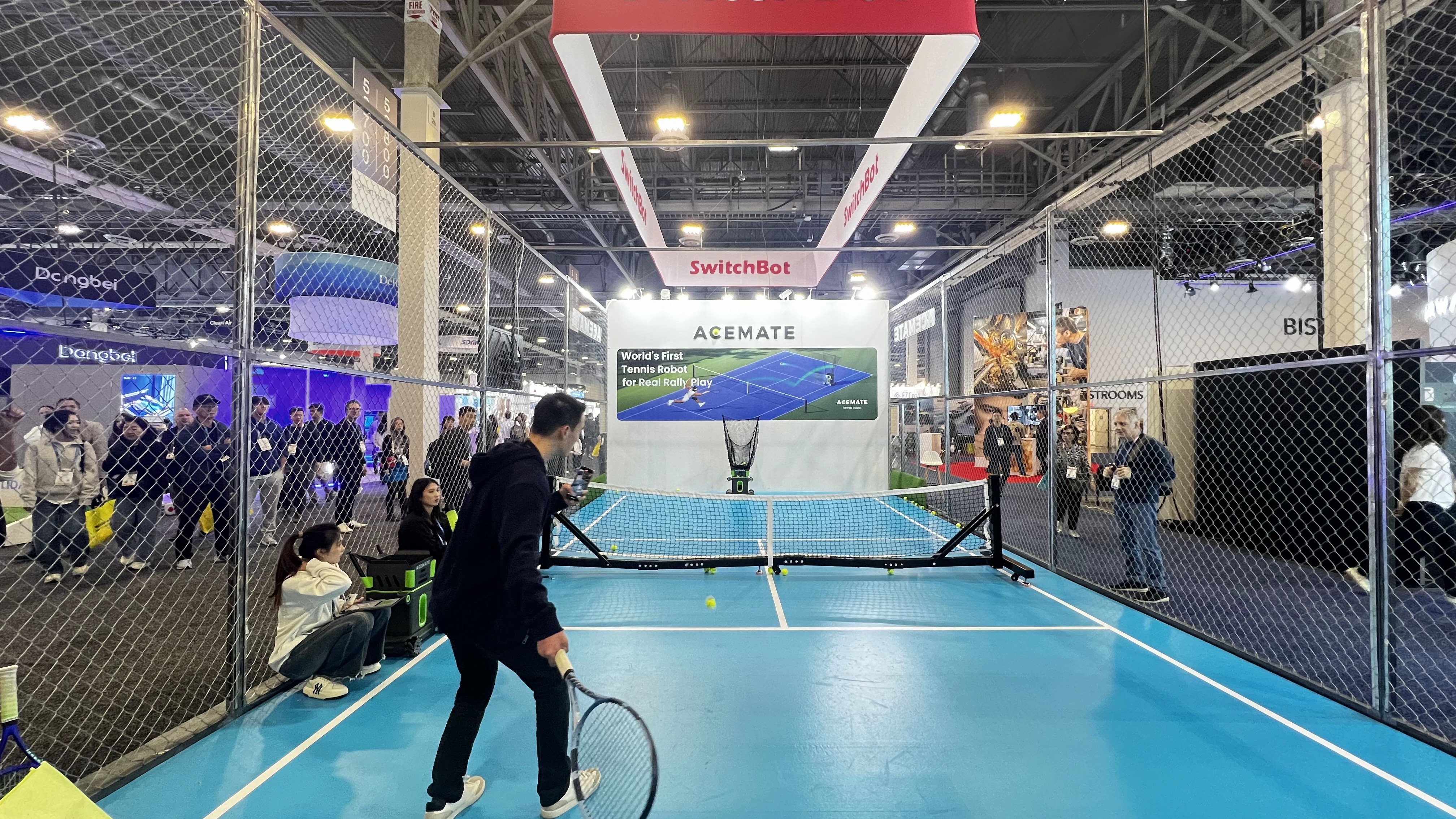 At the CES exhibition, Acemate tennis robot showcased its capabilities by engaging in live matches